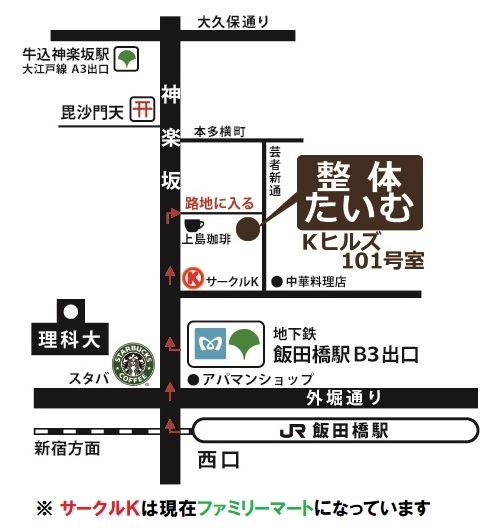 神楽坂の整体・スポーツ整体【神楽坂整体たいむ】へのアクセス情報